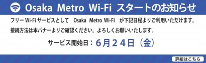 6월 24일(금)부터 프리 Wi-Fi 서비스 “Osaka Metro Wi-Fi”를