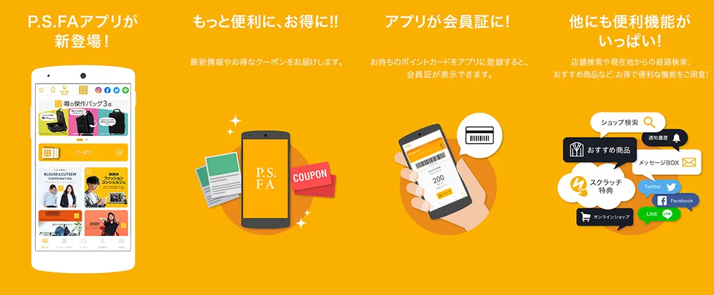 P.S.FA 공식 앱은 회원증 표시나 온라인 Shop search를 이용할 수 있으며, 최신 뉴스를 보실 수 있습니다.